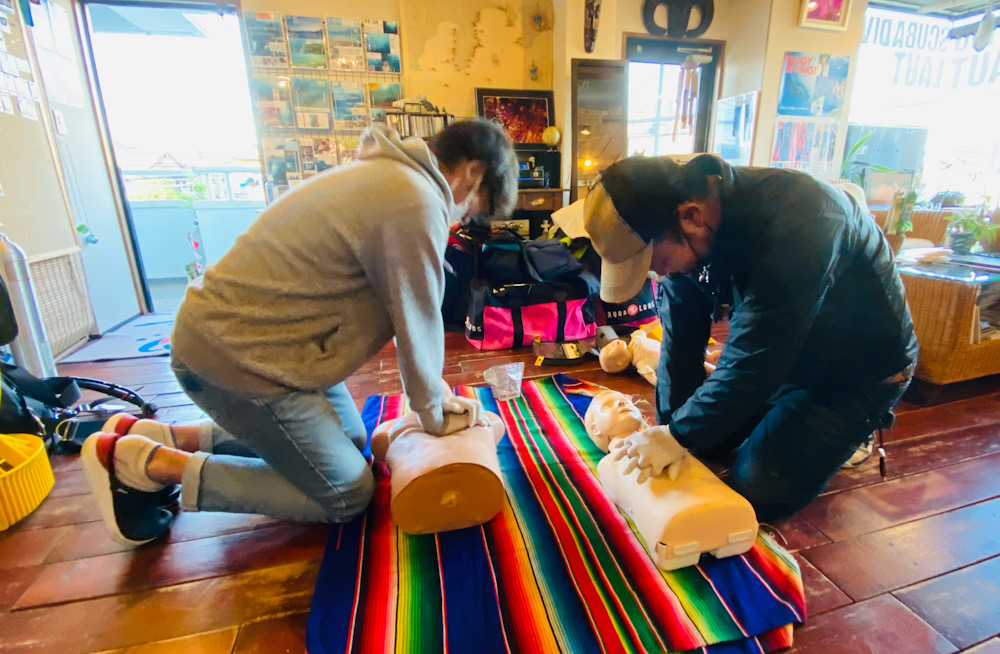 お二人は12月のレスキューコースに向けて、しっかりとCPRの予習です!
