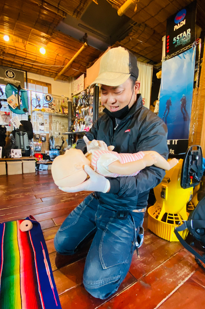 乳児のCPRやチョーキング(喉のつまり)の対処も学びます