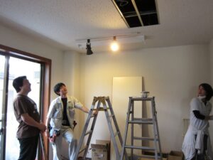 本日は大詰めの引っ越し作業に入ります 床の端を詰める作業と、難所の天井に竹を吊るし、それによしずを敷き詰める作業です 軽トラ2台出動! タモツ輪業に一之瀬電気 めちゃくちゃ助かりました! 昼は店内でピクニック気分です! […]