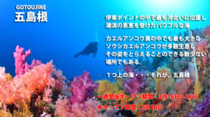 5月の本OPEN前に潜れる伊東ダイビングポイント「五島根」新着!!