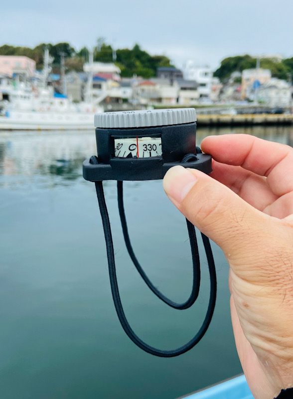ただ手で持つと落としてしまう可能性もあるので、バンジーを使って手首に通しておくと、いつでも素早く方角も確認出来ます