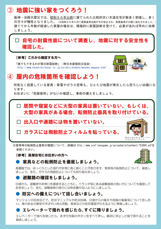 神奈川県の安全防災局のHPで以下のチェックシートを配布しています(当店にもございます)