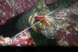 田村さんの天敵(ウツボ)がアカシマシラヒゲエビにクリーニングされてました