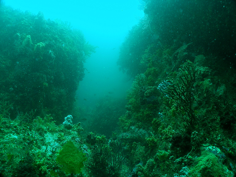 その水路には人よりも大きなソフトコーラルがたくさん生えています。