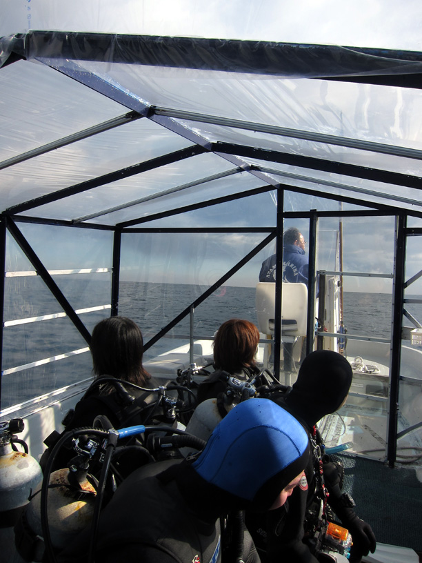 何故ダイバーに優しいかと言うと船にカバーが付いているのでポイントまでの移動が全然寒くな~い。