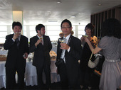 脇阪さん前田さん良い感じのカメラ目線で乾杯です^^きれいな花嫁さんを見つつ船の上で飲むお酒はまた一段と美味しかったのではないでしょうか??(≧ω≦)
