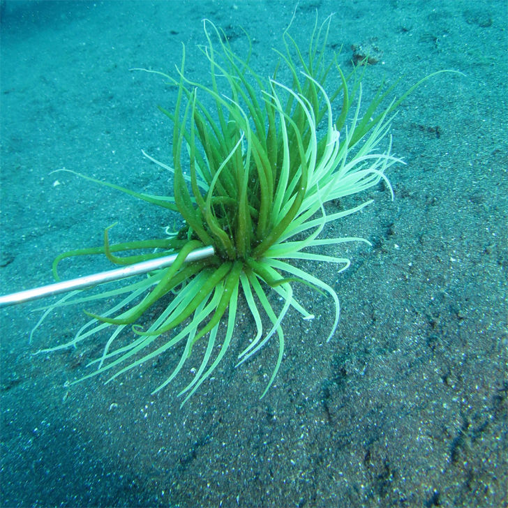 ハナギンチャク類はイソギンチャク類に似ていますが管の中にすみます
