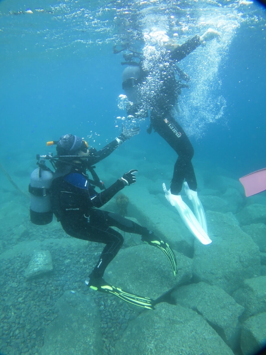 午後からは行方不明ダイバー捜索の練習と水面レスキュー呼吸の練習です